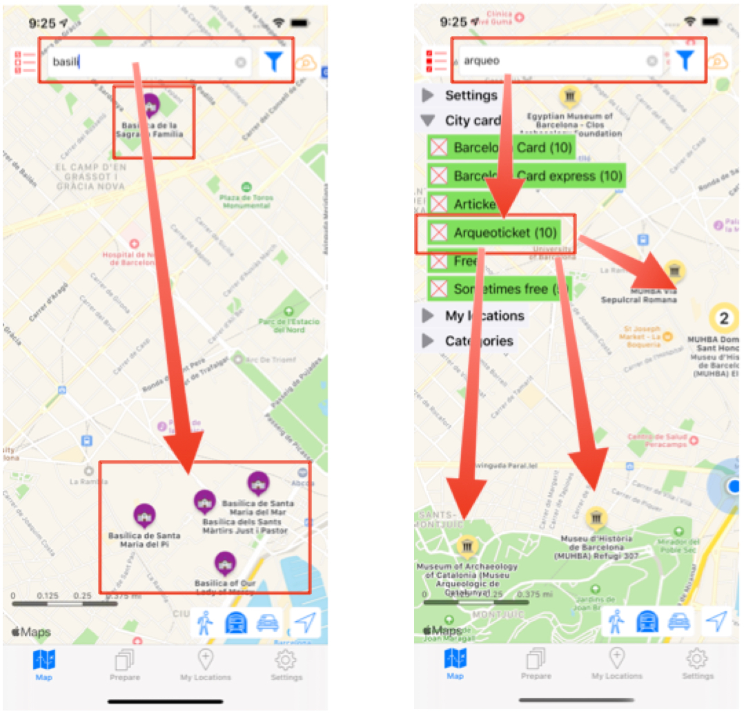The Barcelona Attractions Map App is usable and useful without these cards. In this case the attractions are shown with the symbol of their category.