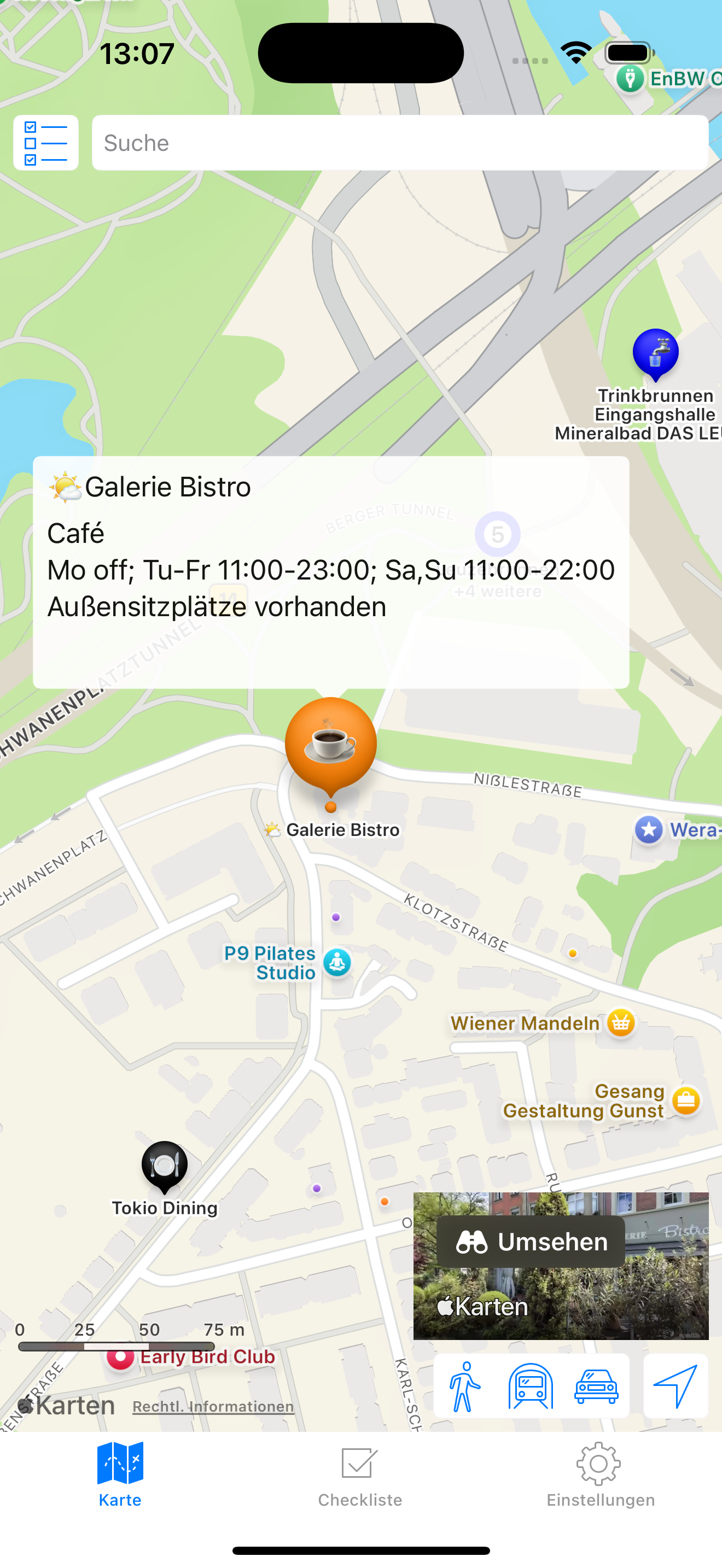 Auf der Karte, zoome an den Ort, der dich interessiert oder tippe auf den Knopf rechts unten.